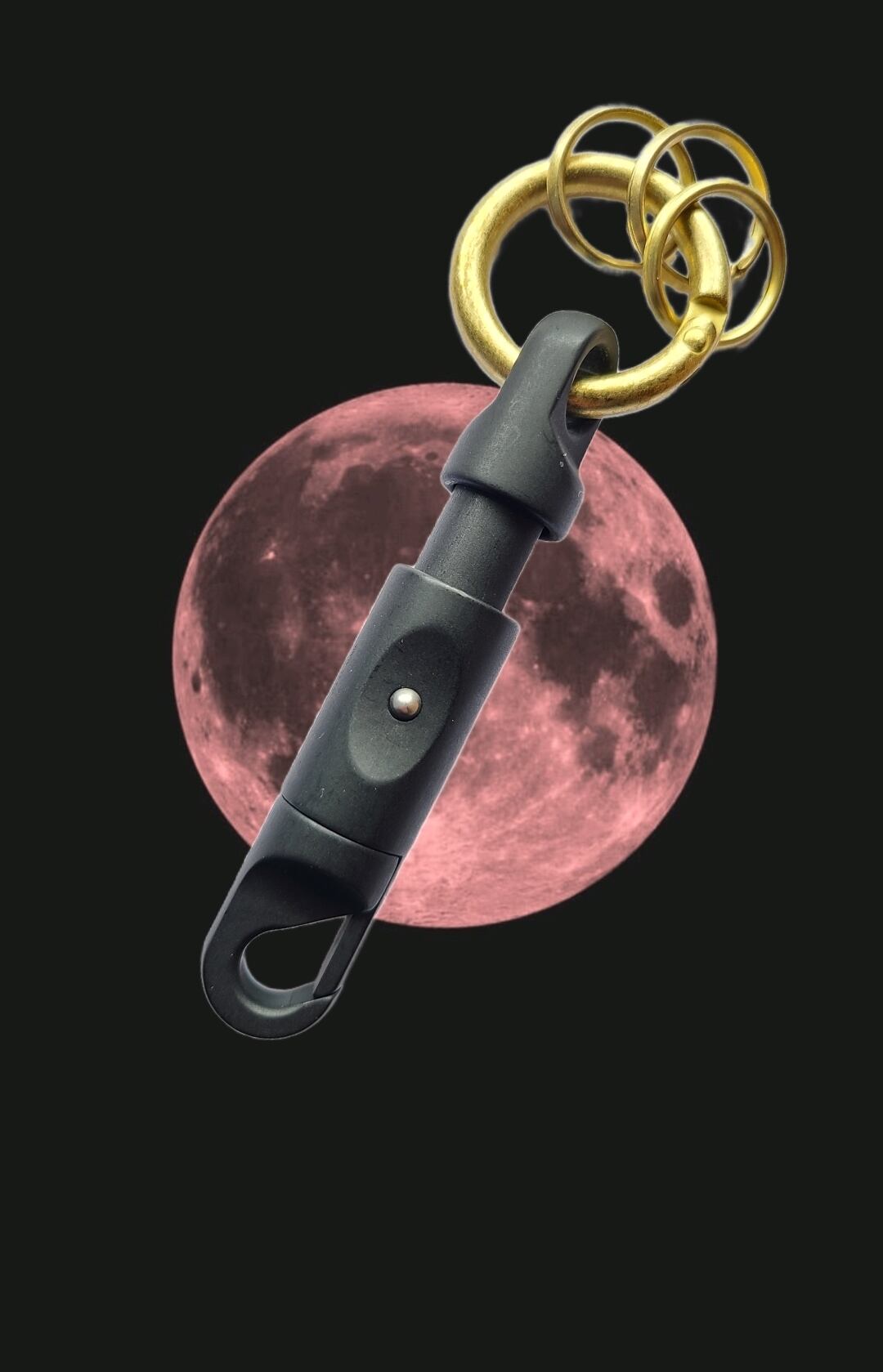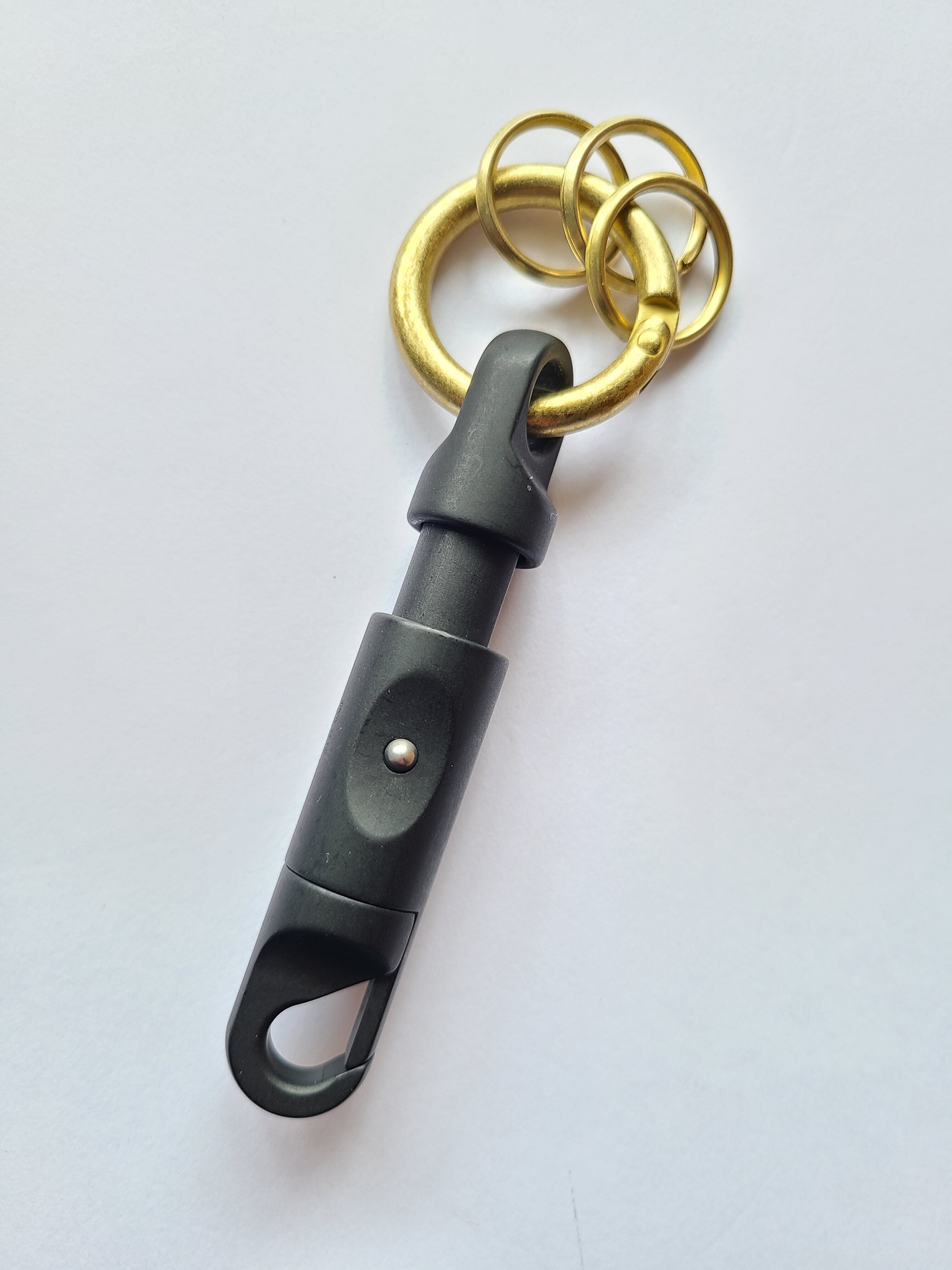 LE Hook とは、スイスでデザインされ生まれたプロユースの カラビナ です。中央の両サイドにあるボタンを押しながら本体をスライドさせると片側のフックが開くクイックリリース(開閉)機構のアルミニウム製カラビナ(キーホルダー)。