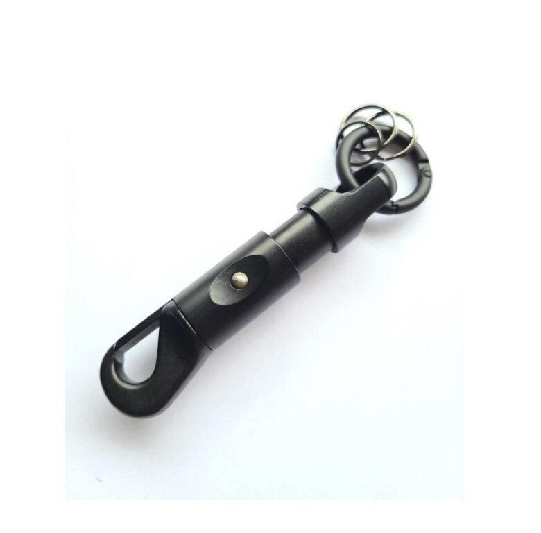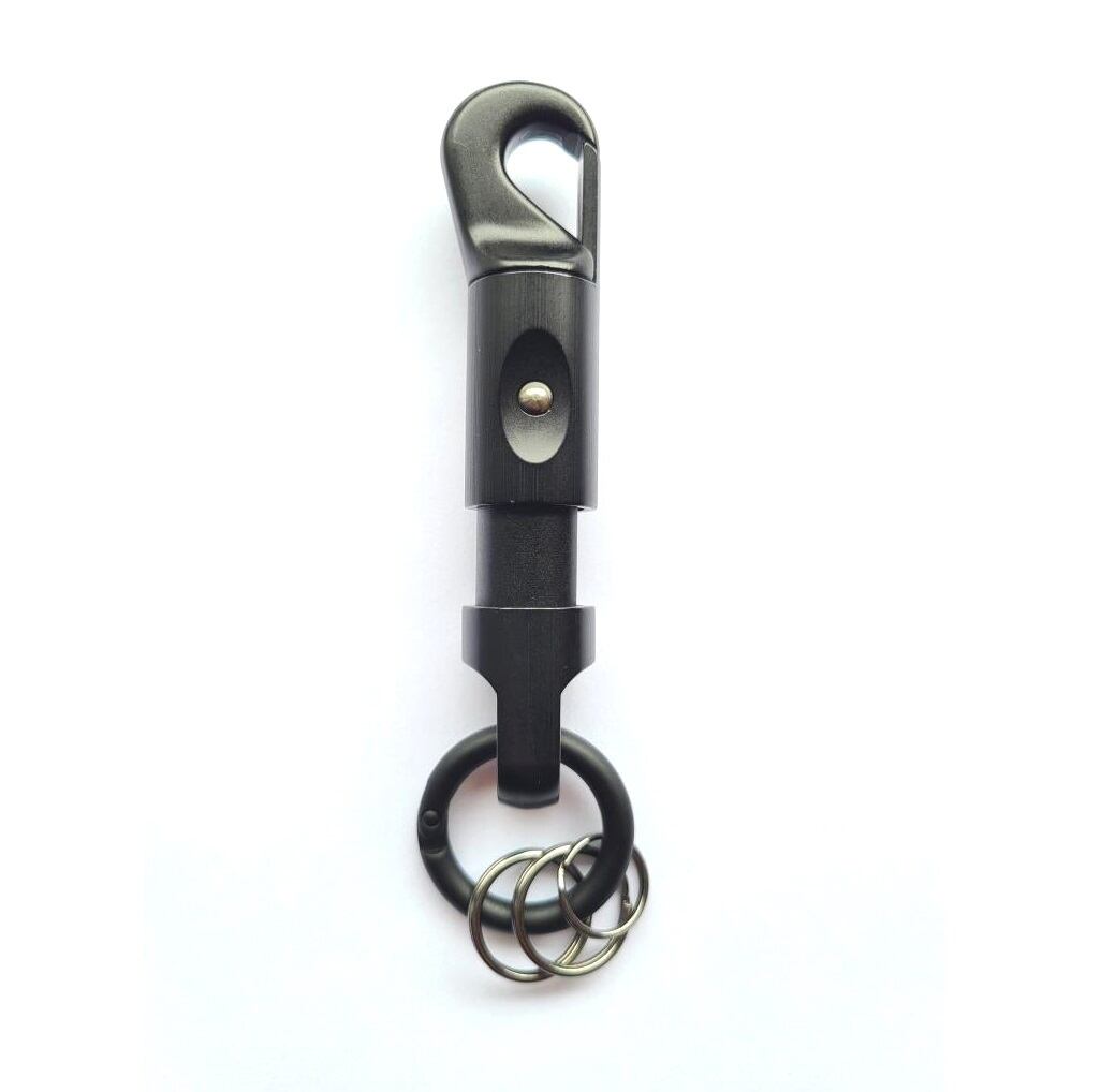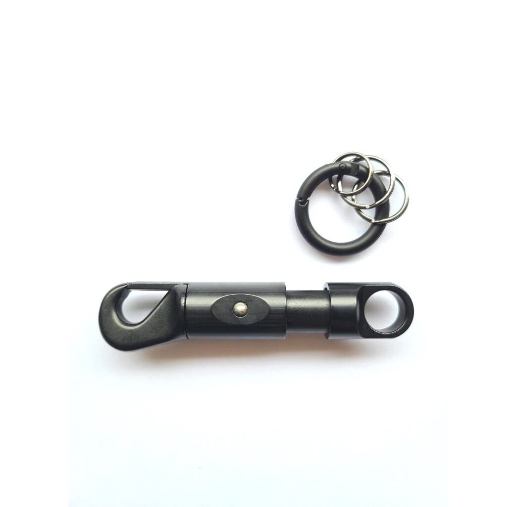 LE Hook とは、スイスでデザインされ生まれたプロユースの カラビナ です。中央の両サイドにあるボタンを押しながら本体をスライドさせると片側のフックが開くクイックリリース(開閉)機構のアルミニウム製カラビナ(キーホルダー)。