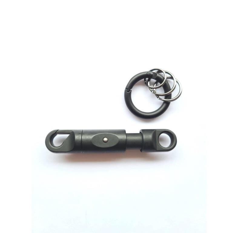 LE Hook とは、スイスでデザインされ生まれたプロユースの カラビナ です。中央の両サイドにあるボタンを押しながら本体をスライドさせると片側のフックが開くクイックリリース(開閉)機構のアルミニウム製カラビナ(キーホルダー)。